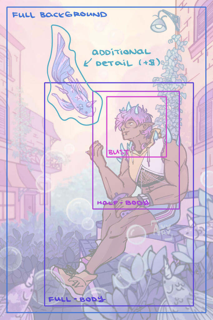 📧 you can contact me via my email [email protected], or DM me on discord @avyary. you can also DM me on instagram, but i may not be able to respond quickly!💸 payment is via paypal, and upfront for commissions $60 and under; however, if you need a payment plan, especially for larger commissions, i am happy to arrange something that works for you! base prices do not include paypal processing fee, which i append separately.📷 i need reference material, the type of commission you want, any specifics regarding size/resolution, your paypal email, and any other things you want to see in the commission!🎨 this includes pose, character traits, etc.; i would also like to know if you intend to print the art. for pet portraits, i require a photo reference, as i will paint directly referenced.📅 i will tell you when i will start working on your commission and when you can expect the final product. the finished commission will be shared via google drive in high resolution PNG and JPG forms.💐 if you've made it this far, thank you for considering me as a candidate to bring your ideas to life!with much love,